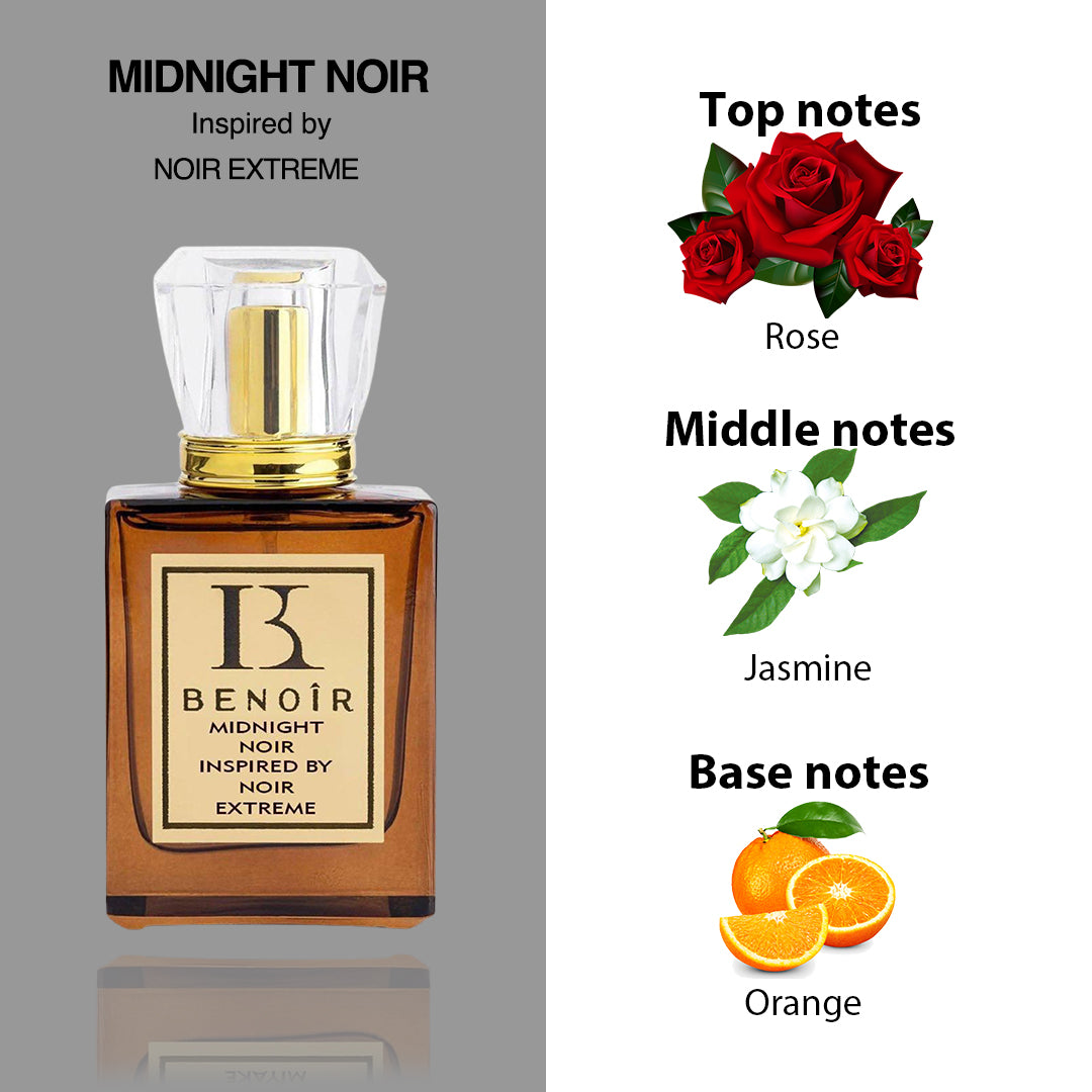 With its exquisite craftsmanship and timeless appeal, Midnight Noir is more than just a fragrance—it's a reflection of your unique personality and taste. Let it become your signature scent, a symbol of your impeccable taste and unwavering confidence.